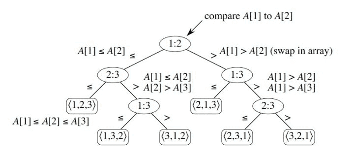 所有基于比较的排序算法,都可以抽象成一个决策数模型,为一个完全二叉树。