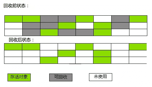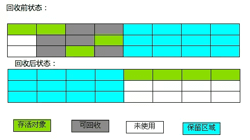 不直接对回收对象进行清理,而是所有存活的对象都向一端移动,然后直接清理掉端边界以外的内存。
