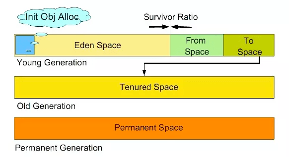 - 新生、年轻代 Young Generation: 对象死亡率高,少量存活, 适合
