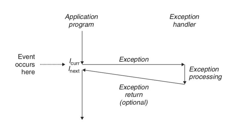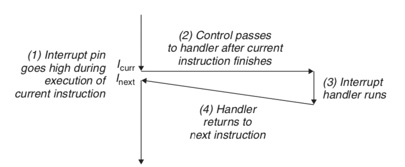 Interrupt - Signal from I/O device - Async - Always returns to next instruction